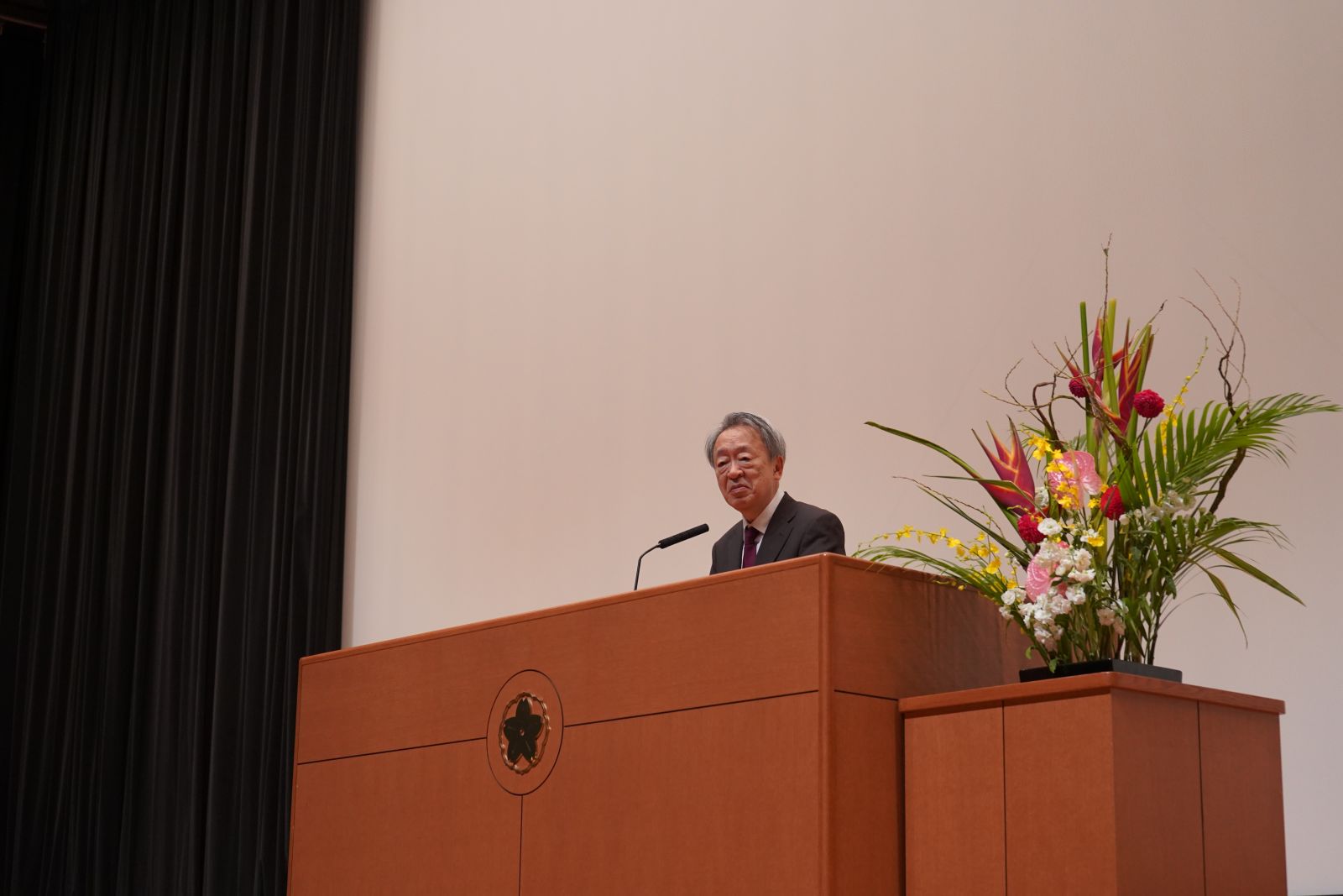 家政学部の卒業生で、現在、自身のブランドである「nori enomoto」を立ち上げ、国内外で活動を続けるファッションデザイナーの榎本紀子氏の講演や、本学客員教授の池上彰先生の「人生100年時代の歩き方」と題した講演のほか、マンドリンクラブとフラ部の在学生たちのステージ発表もありました。