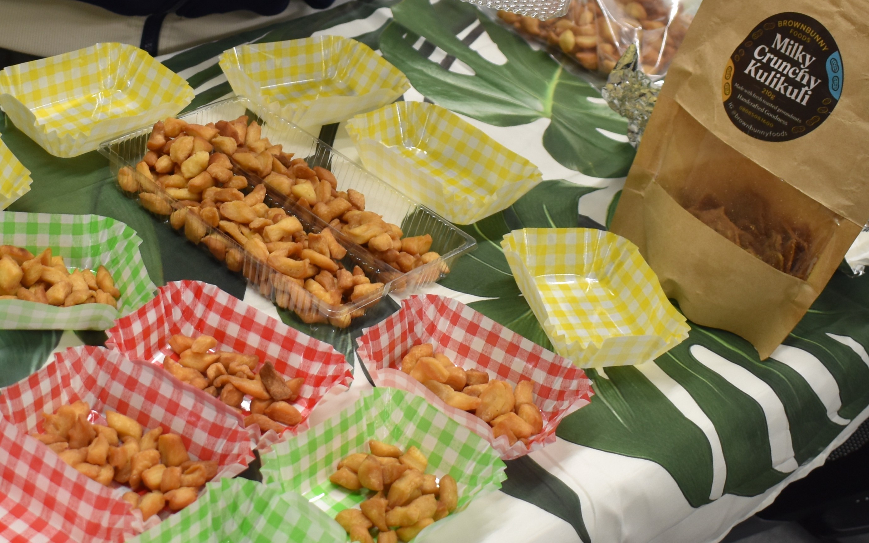 また、講義の最後にはナイジェリアの伝統食であるスナック「Kulikuli」や「ハイビスカスティー」等をいただき、学生達とも楽しく交流していただきました。実際に口にすることで、よりナイジェリア文化に対する興味関心が高まりました。