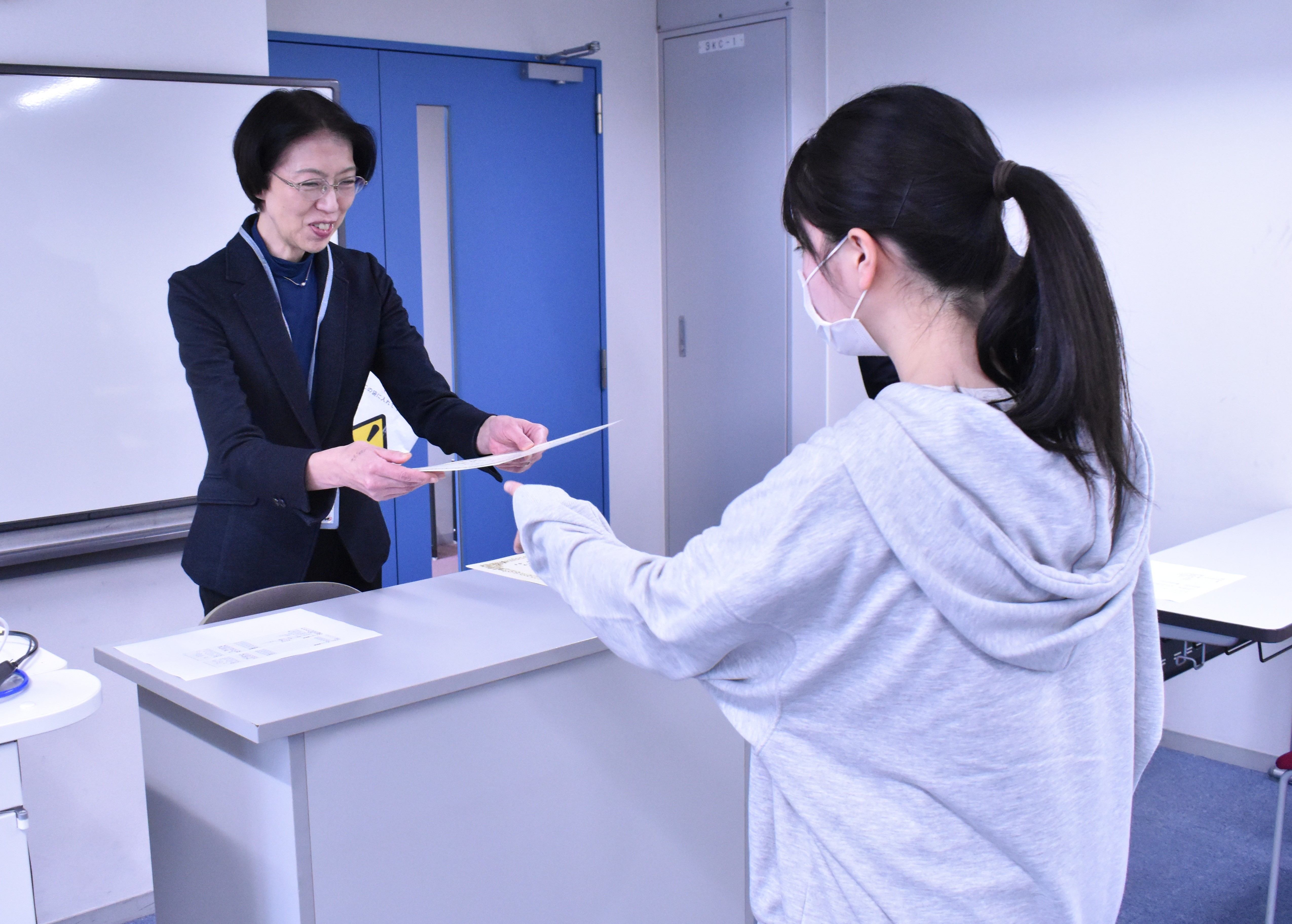 表彰式ではリテラシーポイント優秀者には西村文科長から、千字エッセイコンテスト入賞者には菅生先生より賞状と副賞が手渡されました。