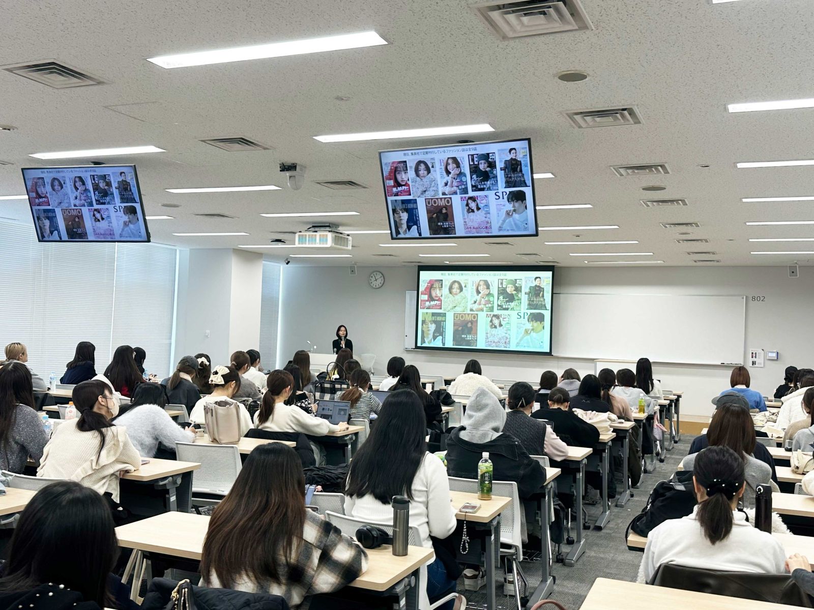 2025年11月、文芸学部「メディア文化論A」(担当教員:橋本嘉代)では集英社『non-no』編集部から、non-noブランド統括/編集長の中川友紀さんとnon-no Web編集長の中込直子さんをゲストにお迎えし、特別講義「誌面、Web、イベント……ますます広がる雑誌編集者の仕事について」を開講しました。