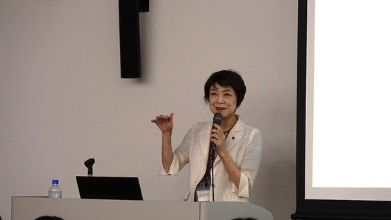 第1部では、坪井純子客員教授による講演「未来を担う皆さんへ~失敗から学び、自分らしい“強み”を磨く~」が行われ、学生にエールが送られました。