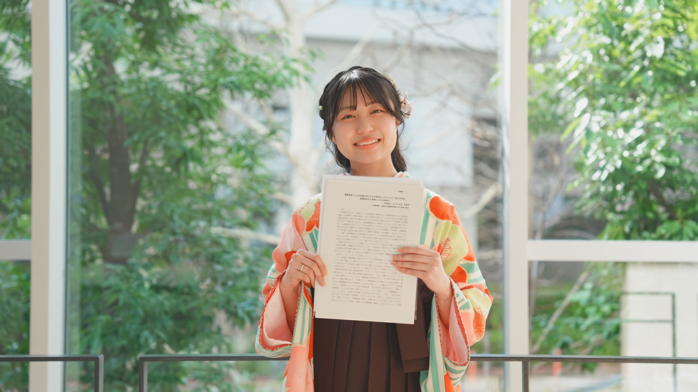 優秀な論文と作品を表彰する「学長賞」。看護学部 看護学科からは森 優貴さんが選出されました。