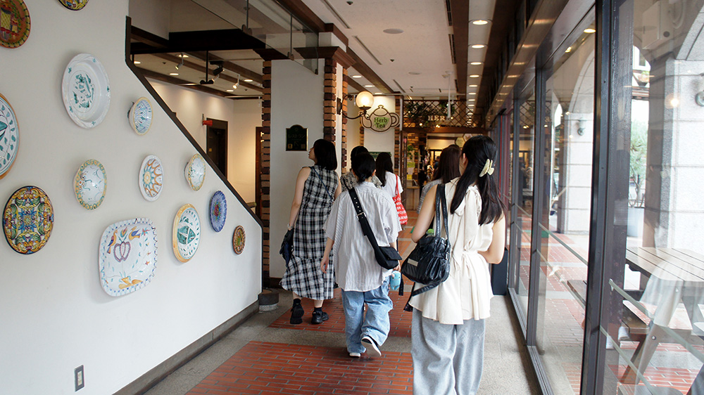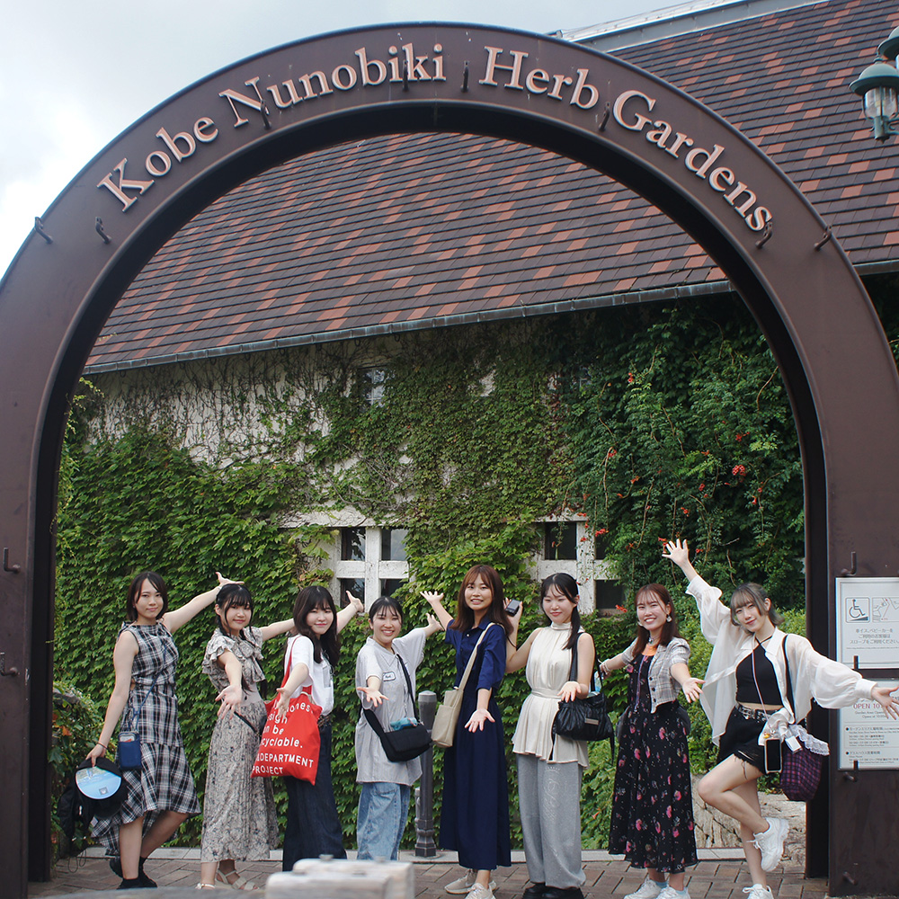 初日の神戸では、まず神戸布引ハーブ園を訪れました。ロープウェイで山頂まで上り、神戸の街を一望できる眺望やヨーロッパ調の建物、花や緑に囲まれた美しい園内を散策しました。また、園内にあるアロマスタジオで良い香りに包まれながらクラフト体験を行うなど、穏やかな時間を満喫しました。次に、アクアリウムとアートが融合した施設「átoa(アトア)」を見学しました。光や音、空間演出がもたらす没入体験を通して、デザインへの新たな視点を得ることができました。夕方には、ランドマークの神戸ポートタワーがあるメリケンパーク、ハーバーランドを訪れました。
