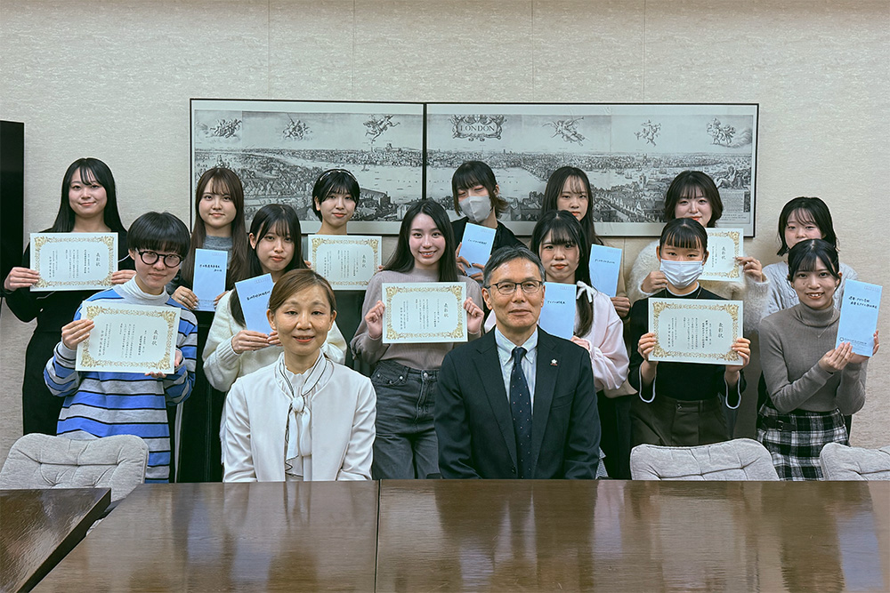 この受賞を受け12月19日(金)には、企画に携わった被服学科の有志学生への報告会を実施しました。受賞の喜びを分かち合うとともに、企画のフィードバックを行いました。