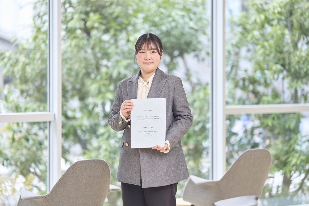 優秀な論文と作品を表彰する「学長賞」。家政学部 食物栄養学科からは北迫 真実さんが選出されました。