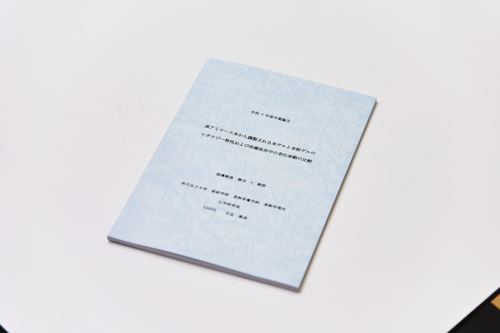 近年、ライフスタイルの多様化により、調理の簡便化が求められ、米飯などの澱粉食品を冷蔵保存し、流通・利用する機会が増加しています。一方で、冷蔵保存中には澱粉の老化が進行し、硬化による食味低下が生じるという課題があります。被推薦者の研究は、これまで主として化学的あるいは調理科学的に検討されてきた澱粉の老化現象に対し、糊化澱粉の食感(テクスチャー)や物性に関して、レオロジー的および食品物性論的アプローチから解析した点に大きな特徴があります。特に、澱粉科学の分野で、糊化澱粉の冷蔵保存中における動的粘弾性の角周波数依存性を3週間以上にわたり追跡した研究は前例が少なく、老化の進行に伴う澱粉高分子の架橋構造形成について、新たな科学的知見を提示しました。さらに本研究では、共同研究先の国立大学の実験装置を用いた長時間かつ連続的な測定が必要でありましたが、被推薦者は共同研究者と綿密に連携し、計画的かつ誠実に研究を遂行しました。これは、「協働」を行う能力に優れていることを意味し、学部の4年間の勉学で共立リーダーシップが培われた結果といえます。