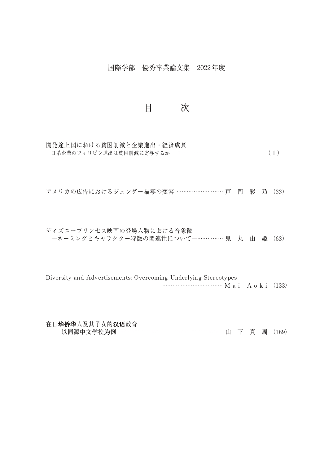 【国際学部】2022年度 優秀卒業論文集が刊行されました