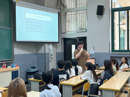 その後、日中の学生を組み合わせて、5つのグループに分かれてSNSでのコミュニケーション・学生生活と日常習慣の違い・流行文化・日中の若者言葉、流行語という4つのテーマについてディスカッションを行いました。