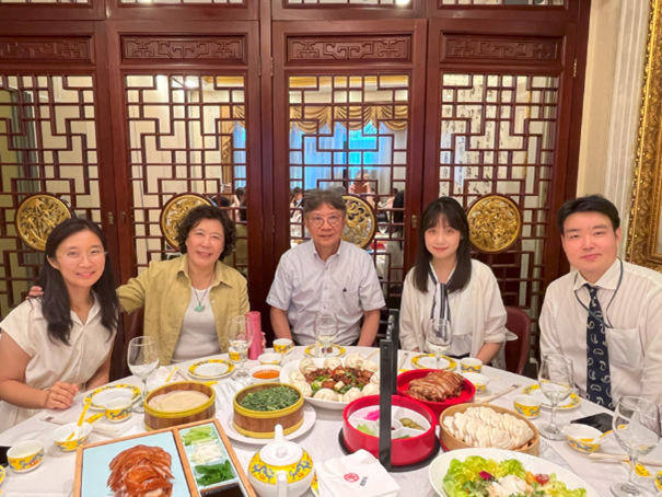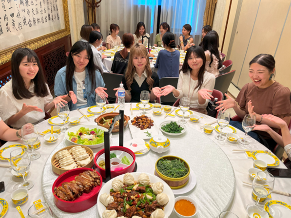 昼食会は大学キャンパス内のレストランの個室で行いました。日本語学部4名の先生方や長期留学の共立生も参加してもらいました。