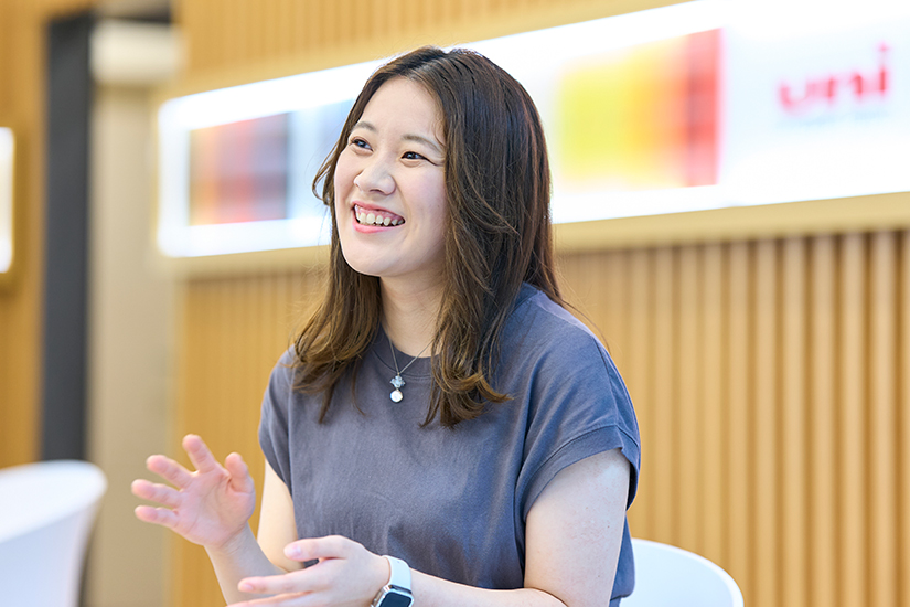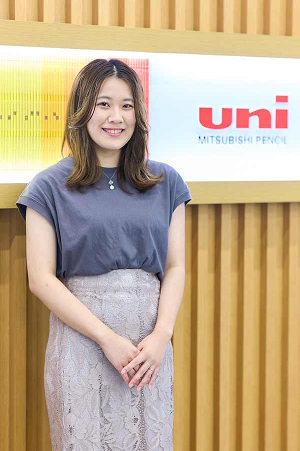 「人々の生活に身近なもの・ことに関われる仕事」を軸に就職活動を行い、三菱鉛筆株式会社に就職しました。現在は人事部で給与計算、勤怠管理、社会保険の手続きといった労務管理の仕事に携わっています。人事としての知識が深まるにつれて、社員の方の疑問・悩みの解決や、働きやすい職場づくりに貢献できている実感が増しており、それが今のやりがいです。社員の方から感謝の言葉をもらうことも多く、日々の活力となっています。最近では、会社のSNS運用に関わる機会もありました。自ら手を挙げてプロジェクトに参加し、投稿するコンテンツの作成を担当しました。
