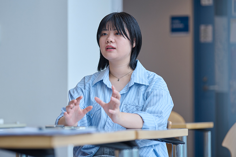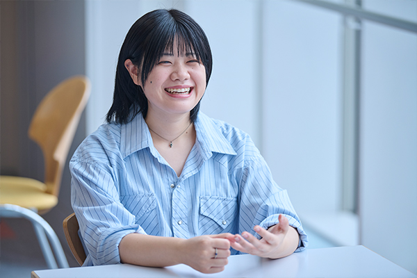 文芸学部には、一から自分で何かをつくる経験ができる授業がたくさんあります。例えば1年次の「DTP基礎実習」では雑誌制作に挑戦しました。写真撮影から始まり、編集ソフトを使ったデザイン・レイアウトまで、全て自分で行いました。現在はより発展的な「メディア応用実習」を履修しています。伝統工芸をテーマにした雑誌をつくろうと考えており、今回は学外での取材にもチャレンジする予定です。授業では作品のクオリティを高めることを目標に定め、決して妥協しないよう意識してきました。この経験を通して、編集ソフトの活用スキルや表現力が磨かれたとともに、自分の作品がコンセプトを適切に表現できているか、客観視する力が磨かれました。