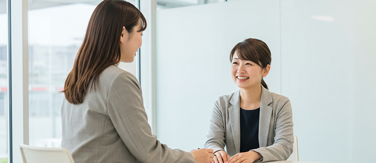 受講開始前及び受講終了後の2回、キャリアカウンセリングがあります。受講開始前は、受講に向けての目標設定や、キャリアを明確にするお手伝いをし、受講終了後には、受講の振り返りとこれからのキャリアについてのアドバイスが受けられます。また希望者は、再就職の条件に応じた求人情報のご案内から選考に向けた書類の添削、面接対策の支援が受けられます。