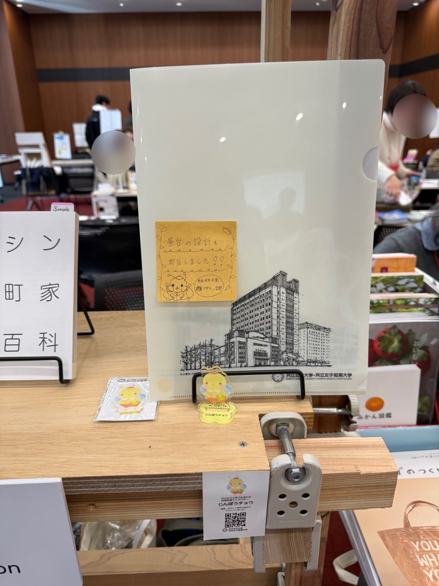 当日は、堀元学長がデッサンした共立講堂を描いたオリジナルファイルと、地域応援キャラクター「じんぼうチョウ」のアクリルスタンドを紹介しました。2日間を通して多くの方が来場され、 地域の皆様と交流することができました。