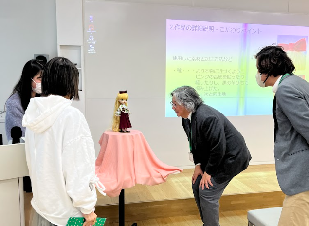 報告会では、プロジェクトに参加した学生たちが、大正ロマンの世界観をどのように解釈し作品へと具現化したのか、その過程や創意工夫、こだわりのポイントについてプレゼンテーションを行いました。