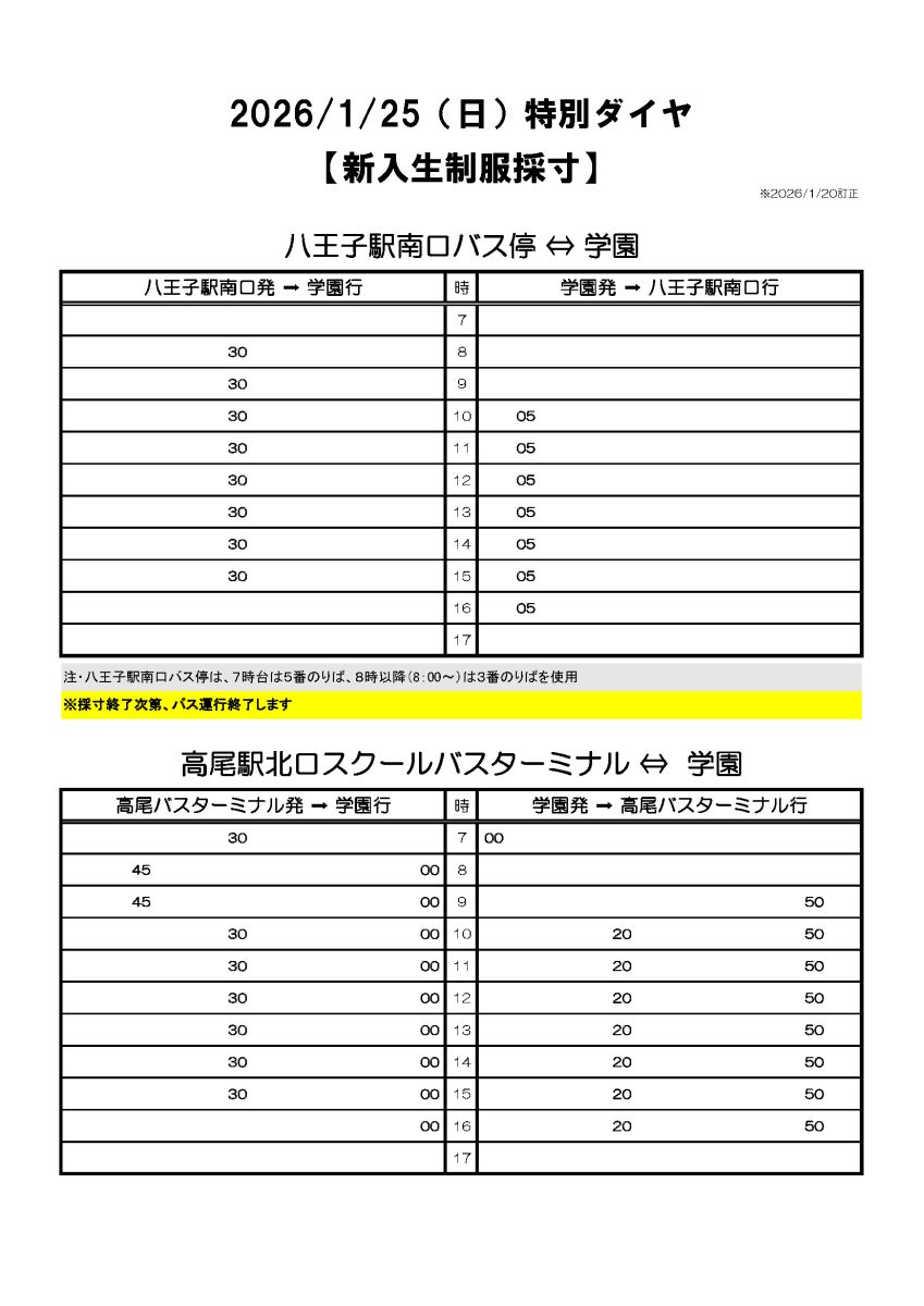 中学校入試・高等学校入試の当日、および制服採寸や説明会などの関連日は、状況に応じてスクールバスを増便して運行します。