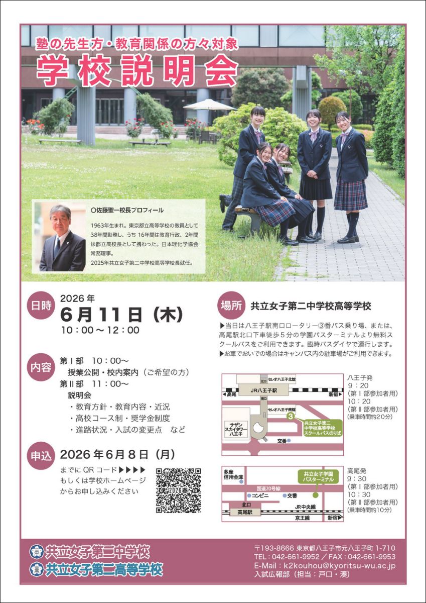 共立女子第二中学校高等学校 入試広報部 担当 戸口・湊