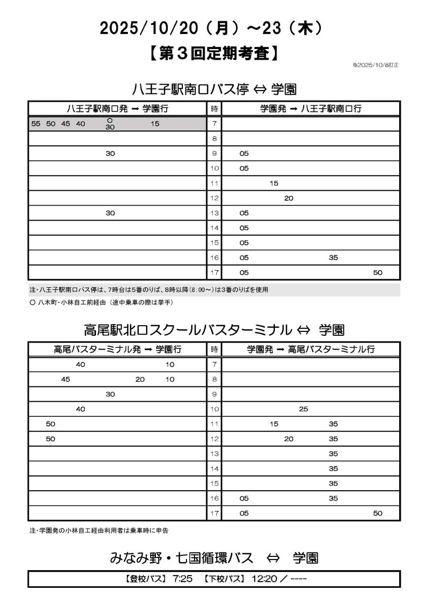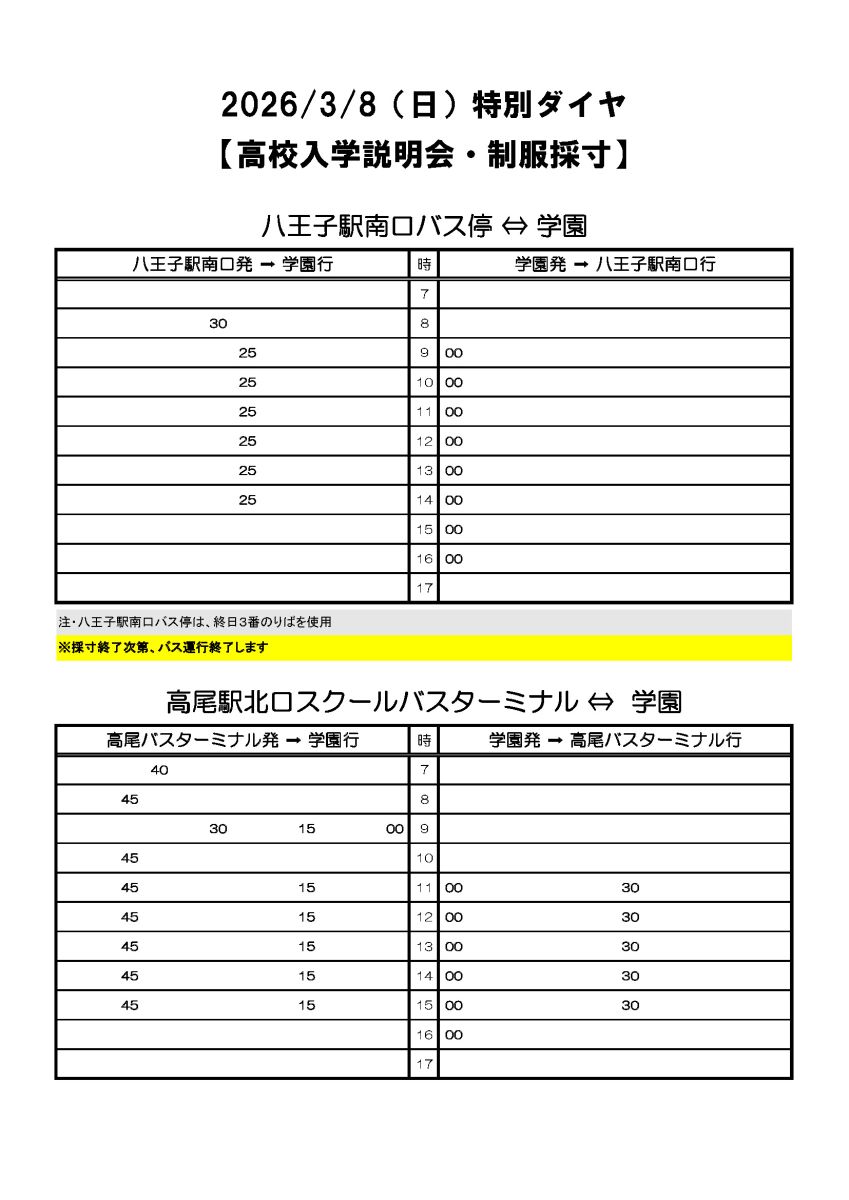 ※ 学校都合や社会状況の変化により、急遽ダイヤが変更される場合があります。ご利用前に再度確認をお願いします。