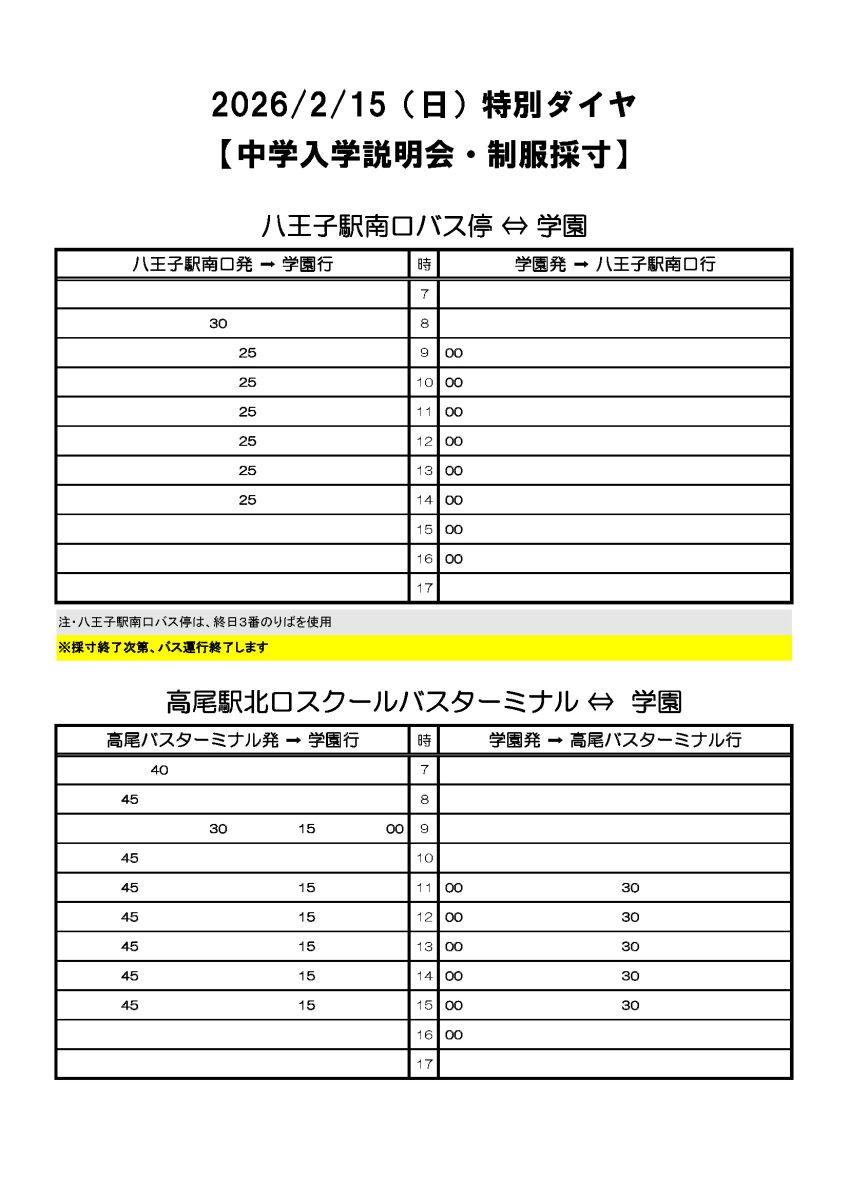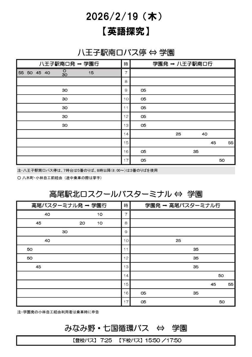 ※ 悪天候等により学校閉鎖となる場合はバス運休となります。