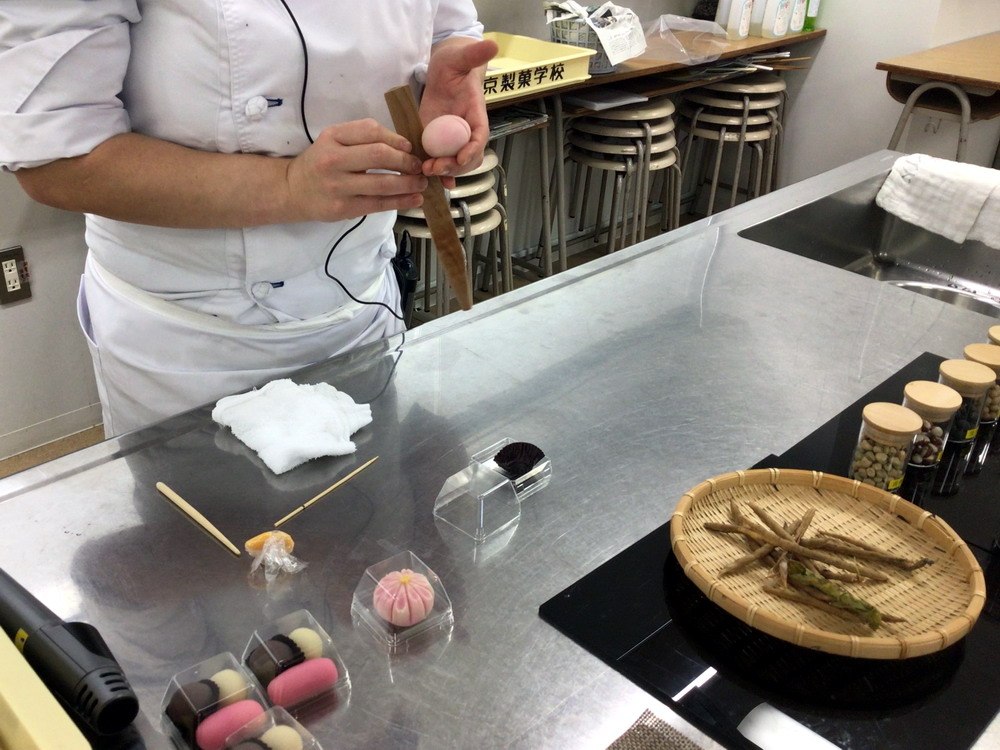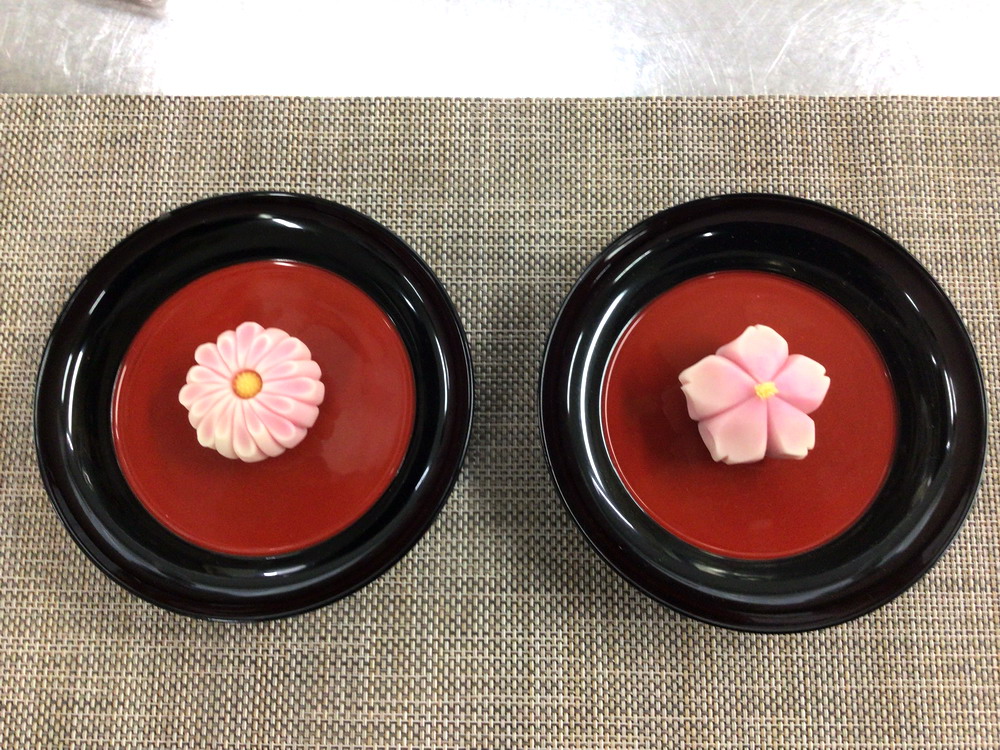 今回はピンクと白の餡で「小菊」と「桜」の練切に挑戦しました。