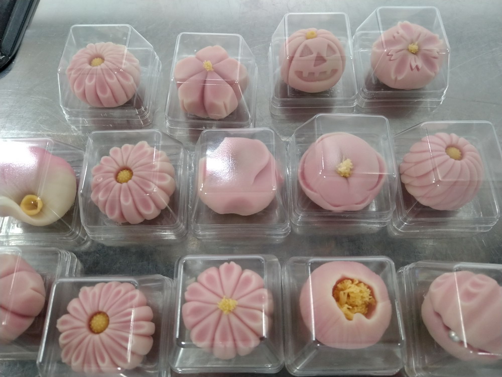 デモンストレーションでは様々な型や道具を使って、ハロウィンのかぼちゃの練切なども見せていただきました。