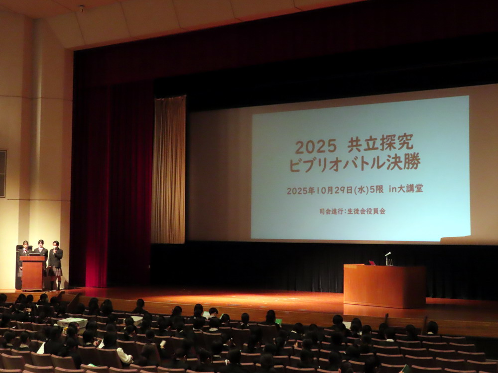 高校1年、総合進学・特別進学コースの共立探究では、2学期にビブリオバトルを実施しています。