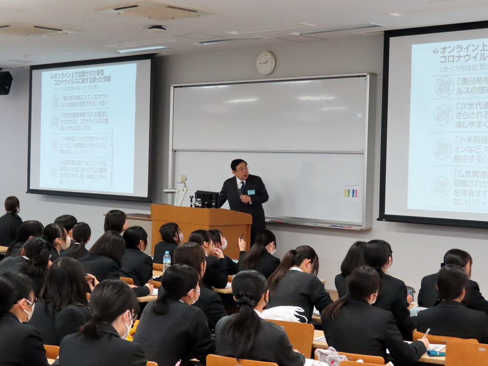 正しい情報と間違った情報をいかに見分けるか、そしてなぜ人は騙されてしまうのかといった、最近特に問題になっているテーマについて、具体的な例を用いながら丁寧に説明していただきました。