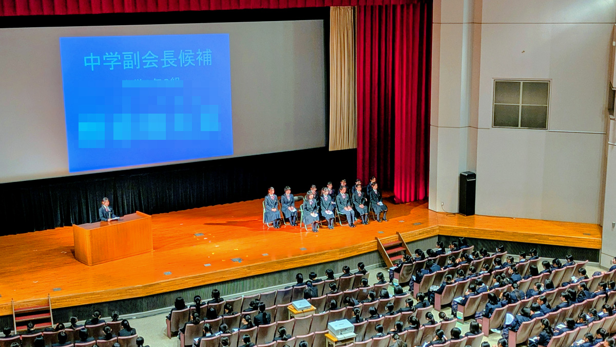 そして本日の午後は、大講堂に全校生が一堂に会し、生徒総会と来年度に向けての生徒会の新役員選挙が行われました。