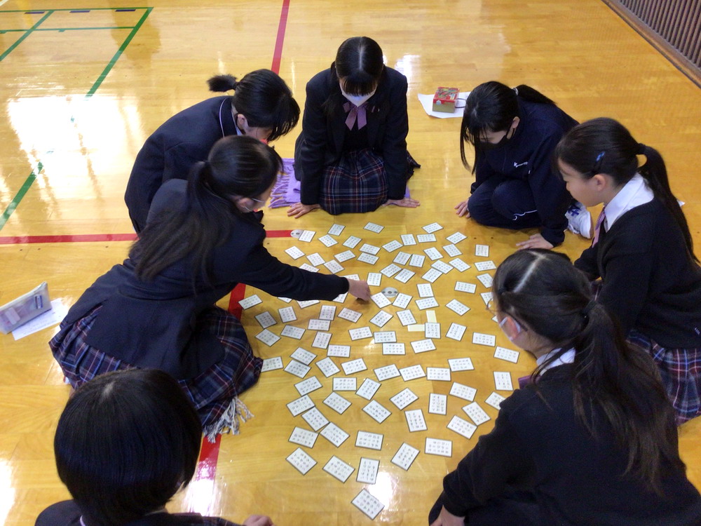 すでに2学期の国語の授業で、和室も使ってクラスごとの予選が行われており、本日の6時間目は中学全体でのクラス対抗戦が開催されました。