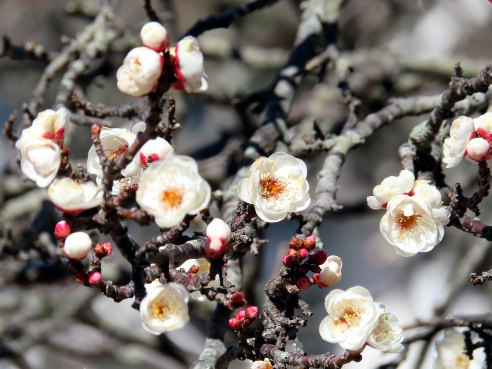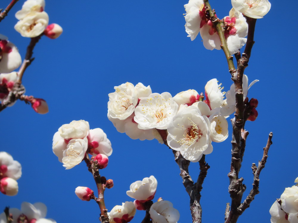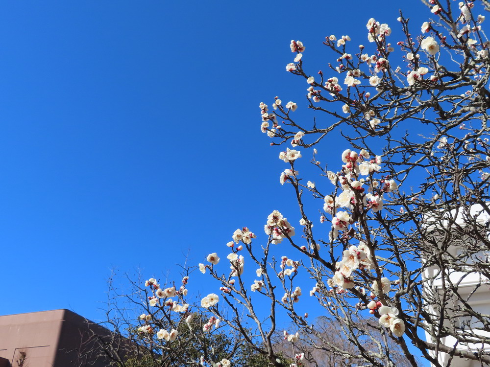 寒さは相変わらずでしたが空が気持ちよく青く澄みわたり、前庭で咲き始めた梅の花も綺麗に映えていました。