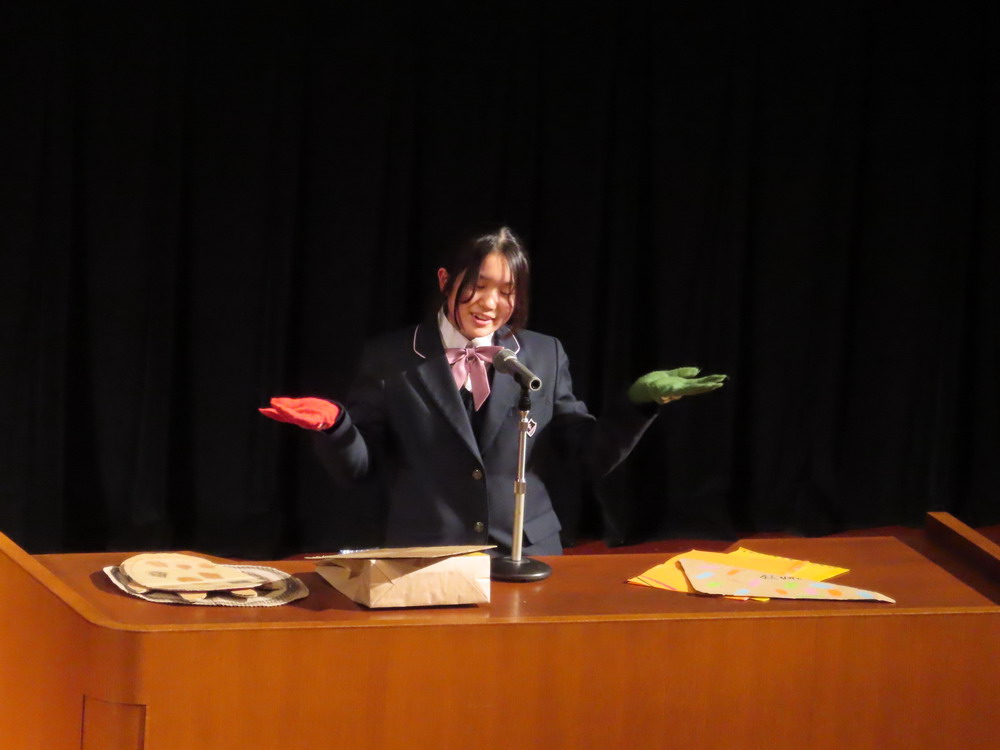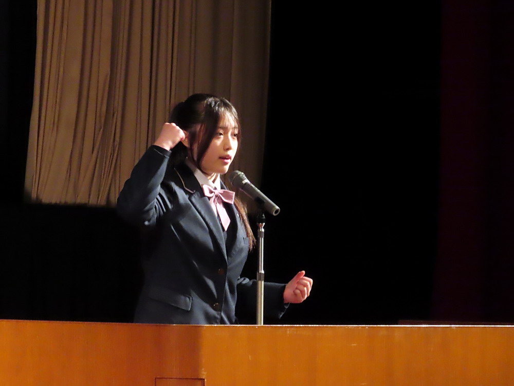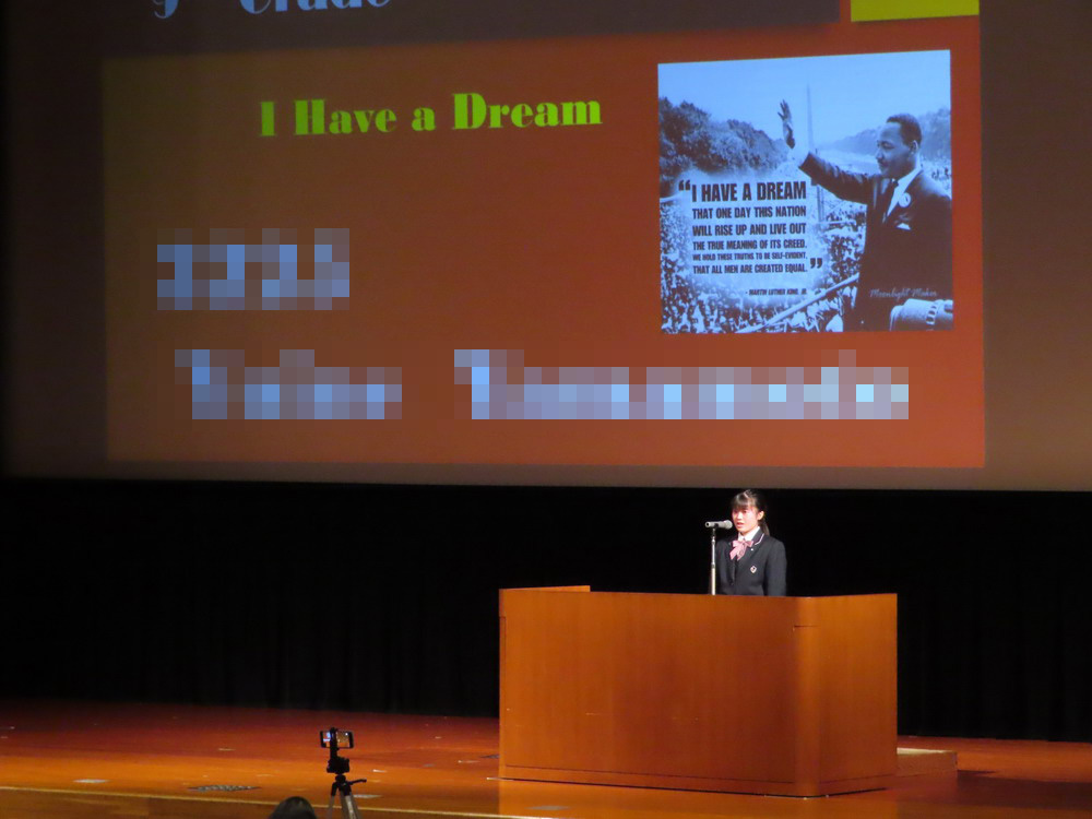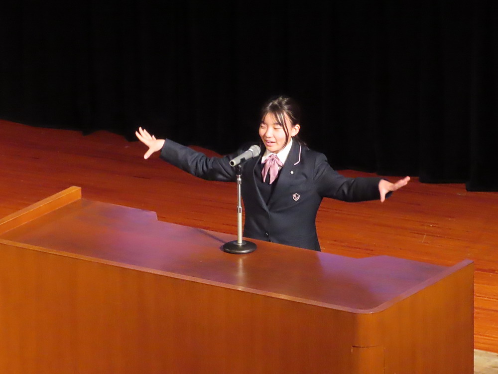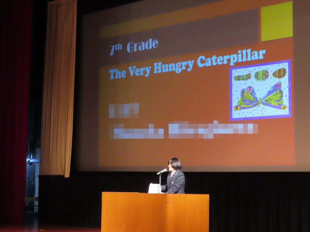 これは英文の暗唱コンテストであり、すでにこれまでの授業内で生徒全員が発表を行い各クラス2名の代表者が選ばれています。