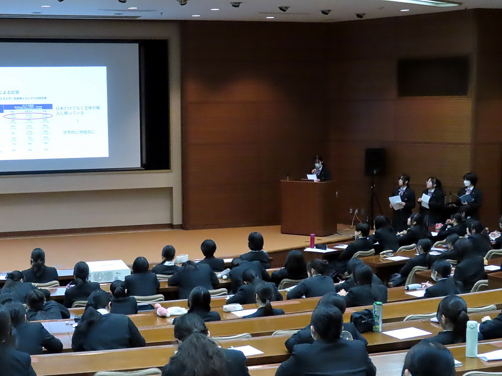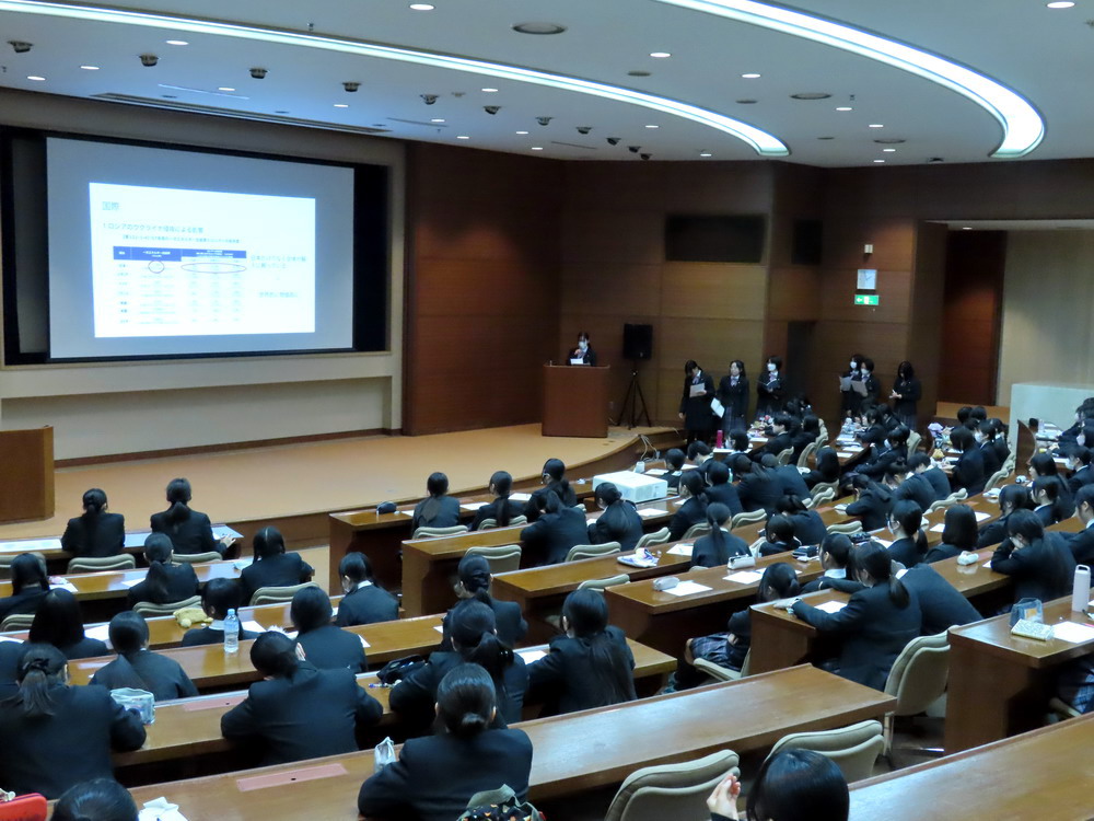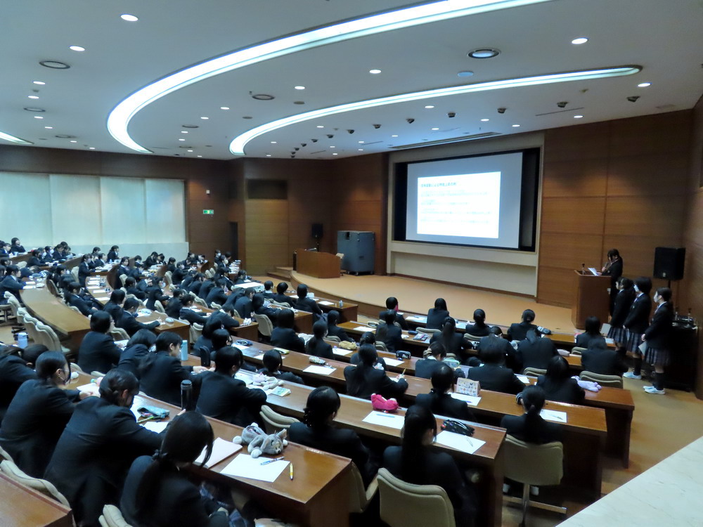 すでに各クラスでの発表会が行われており、今回は高1全員が一堂に会し、クラスの代表グループによる発表会となりました。