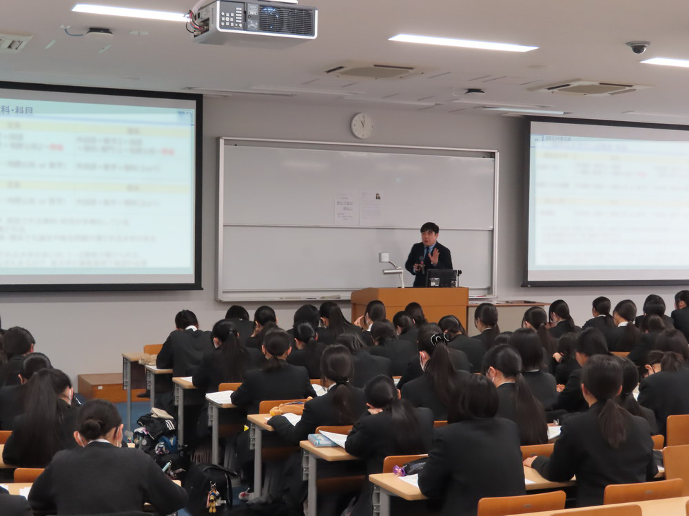 駿台予備学校より講師の方をお招きし、大学入試の現状と基礎的な知識、およびこれから受験勉強を行うにあたっての心構えなどをお話ししていただきました。