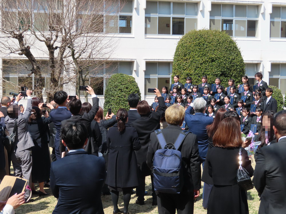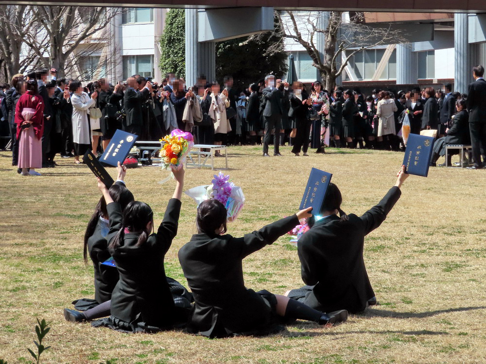 天候も穏やかで、式の後に中庭で友人や保護者の方と賑やかに写真を撮り合う卒業生たちの姿は、幸せに満たされているようでした。