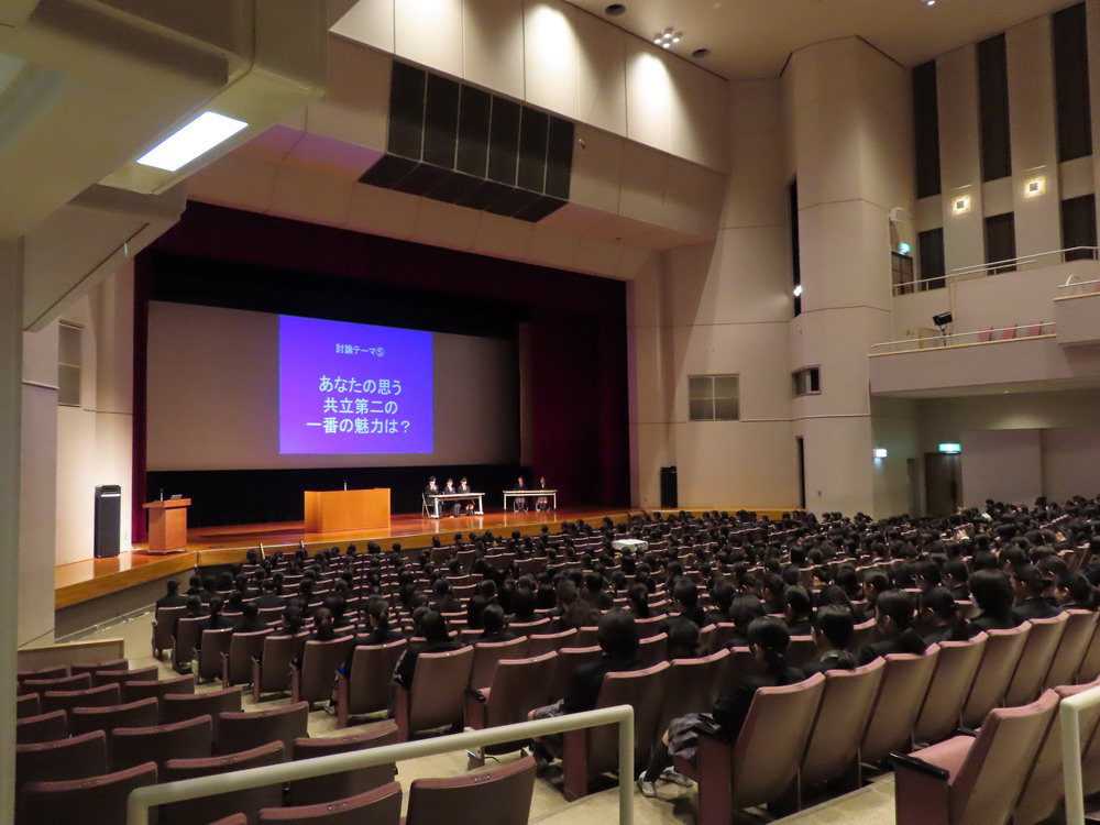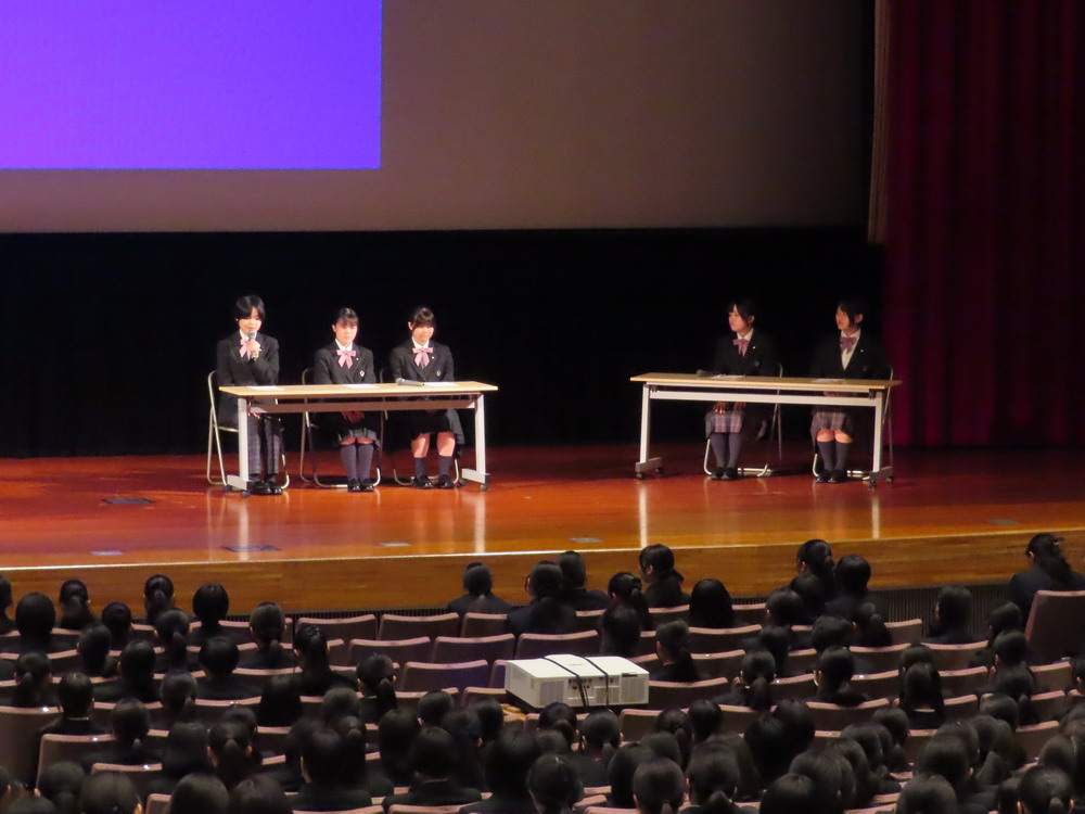 大講堂に集まった生徒全員を前に立候補者の立ち合い演説会が行われ、さらに選挙管理委員会を進行役とした討論会も実施されました。