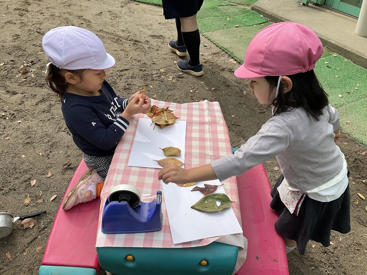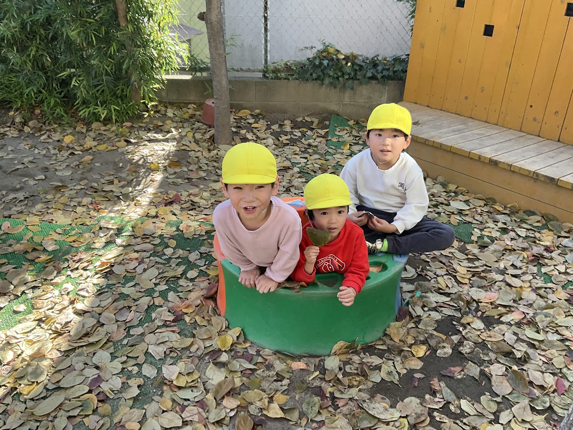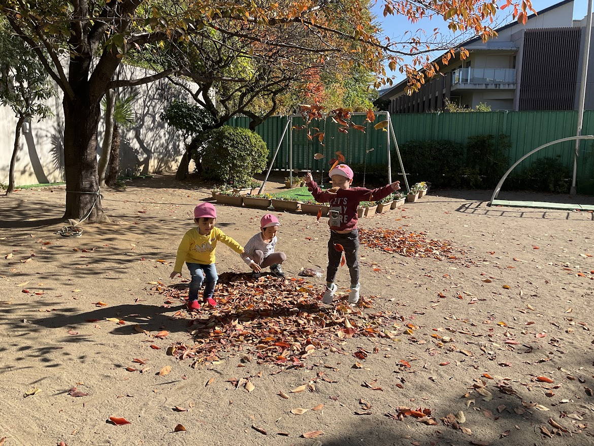 秋も深まり、園庭には毎日たくさんの落ち葉が舞っています。