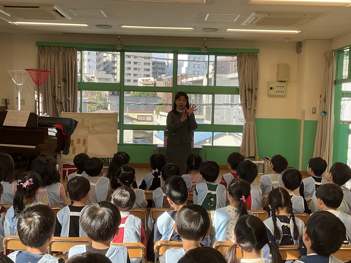 2学期の終業式をいたしました。冬休みのお約束として、「早寝早起き」と、「お家の人のお手伝いをする」のお話を聞きました。いつもお手伝いをしている人、と尋ねると、たくさんの手が挙がり、色々なお手伝いを発表する人もいました。新しい年を迎えるにあたって、お正月のお話も聞きました。製作したこまや羽子板で遊ぶ方もいることでしょう。お家の人とカルタ取りをするんだよ、と教えてくれる人もいました。