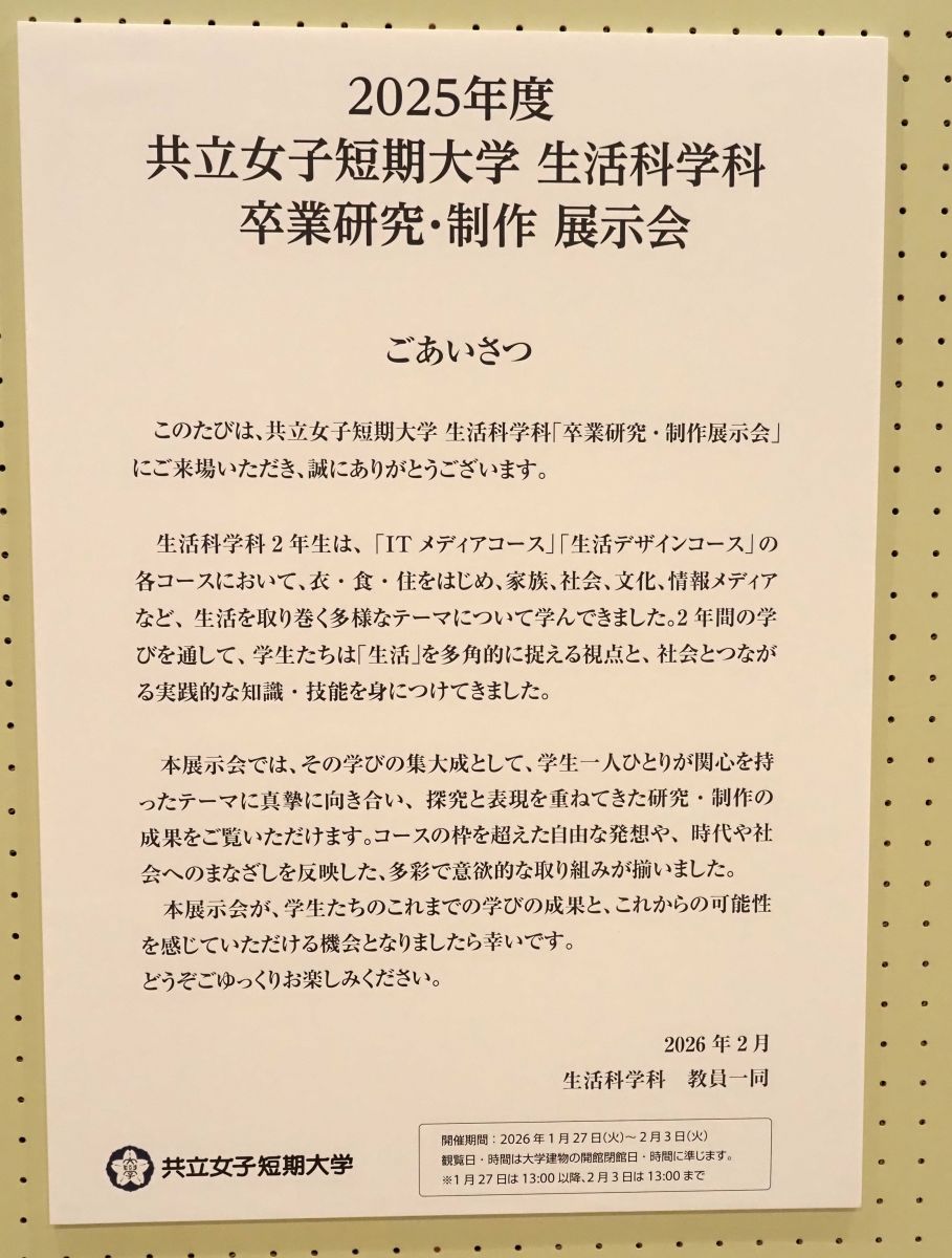 【短大・生活科学科】卒業研究・制作展示会を開催しました