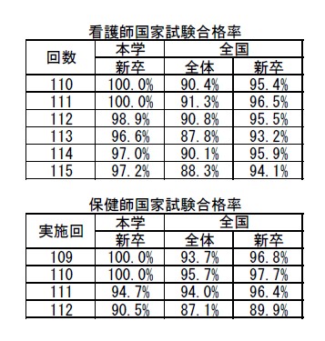第115回看護師国家試験および第112回保健師国家試験結果について