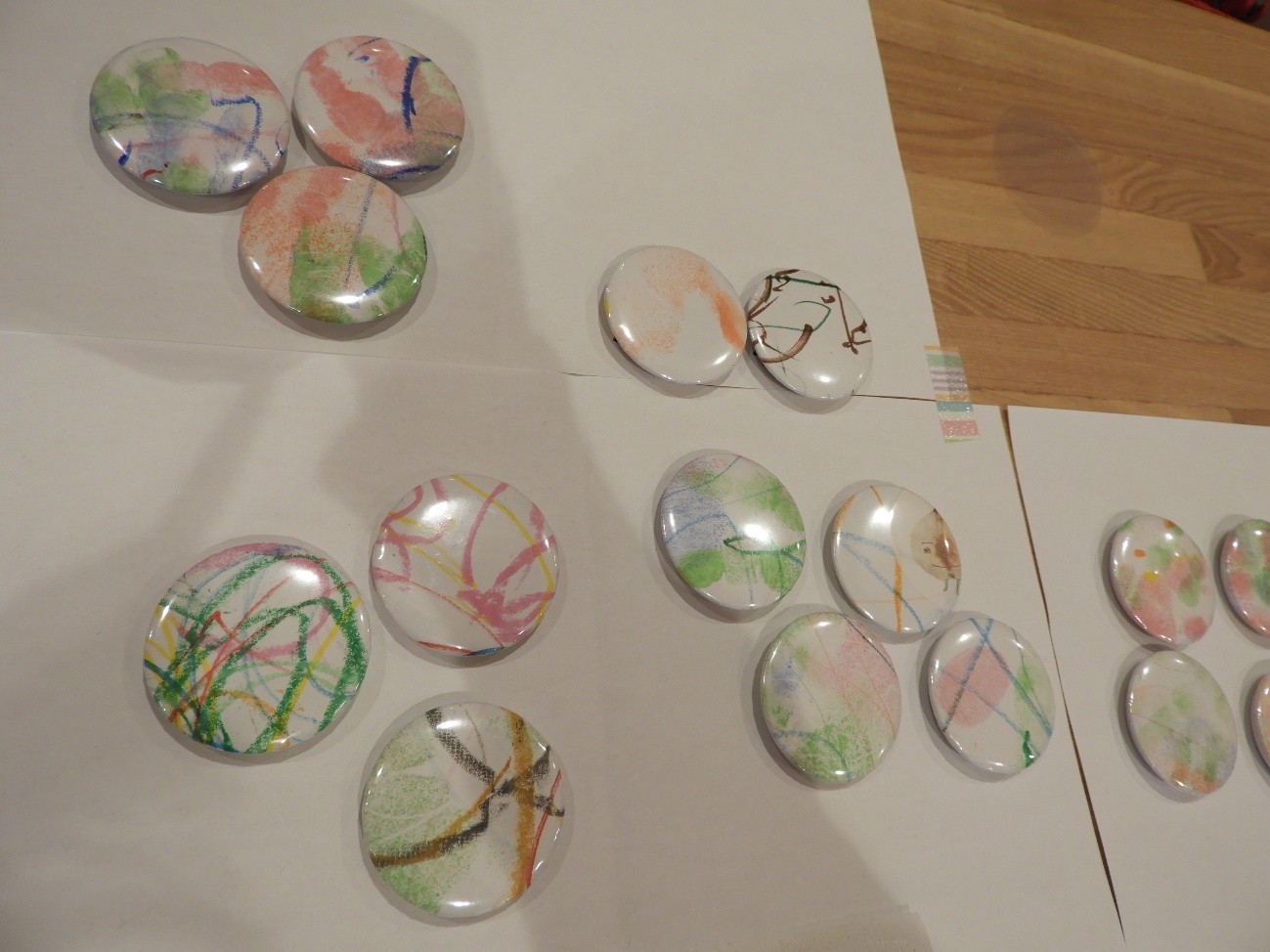 さらに、「ただのなぐり描きだと思っていたものが、なんだか素敵な作品になった!」「世界に一つしかないオリジナルのバッジ!」と保護者の皆様からの喜びの声が聞こえてきました。今しか描けない子どもたちの「絵」を残る形にしていただいた貴重なひと時となりました。