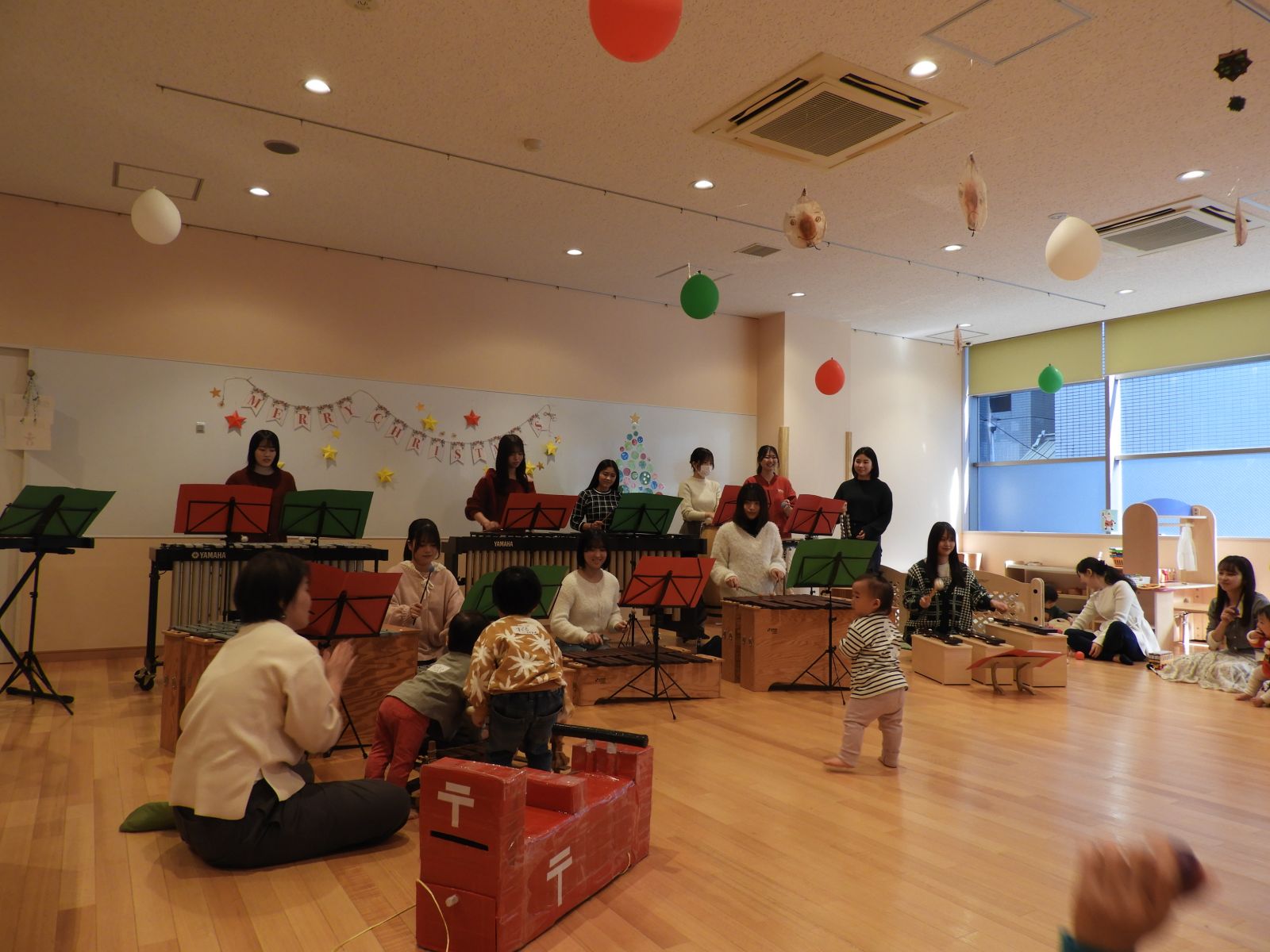 始まりは保育者のクリスマスの絵本の読み聞かせから。トーンチャイムの演奏が絵本の途中から始まり、コンサートへといざないます。