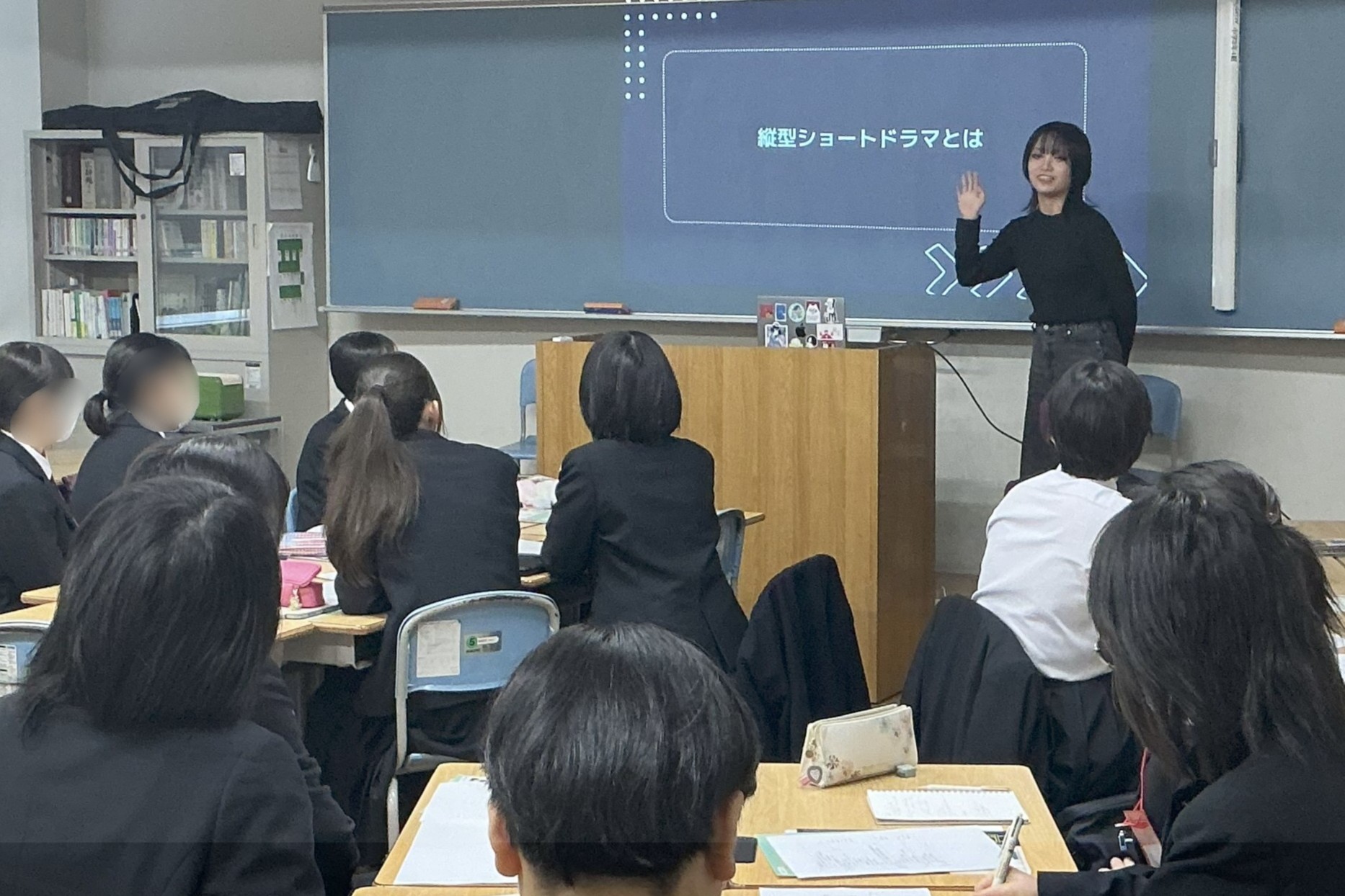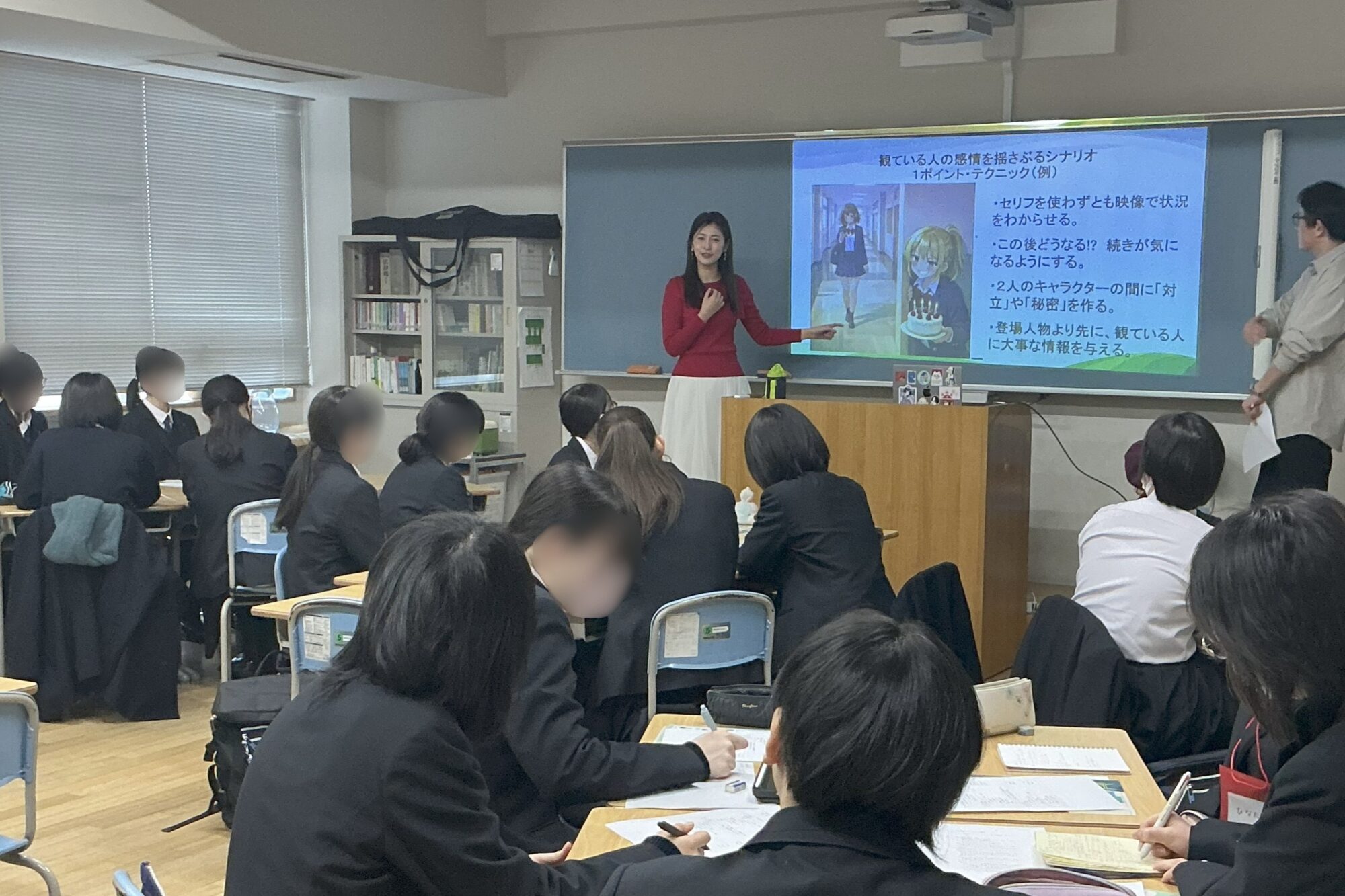 探究活動の一環として、日本脚本アーカイブズ推進コンソーシアムと本校国語科によるコラボレーション企画『映像シナリオの発想法 ~書いて、演じて、撮影してみよう!』講座が開催されました。講師として脚本家の小林雄次先生、ゲスト講師として俳優の長谷部瞳先生、ショート動画プロデューサーの樅山日向先生をお迎えし、中2~高3の希望生徒19名と国語科教員が参加しました。午前は講師の先生方の作品を題材にしたレクチャー、午後は4チームに分かれてシナリオ制作と縦型動画の撮影に取り組みました。部活動等で演技や撮影の経験がある生徒もいれば、全くの未経験者もいましたが、学年の枠を取り払ったチームで全員がリーダーシップを発揮して素晴らしい作品が完成しました。講座後の感想にも「将来は演劇の道を進みたいので、今日学んだことを活かしていきたいです」「基本から教えていただきありがたかったです。今回の経験を活かして自分の探究に生かしていきます」「私は、演技を一切やったことがなかったので全く知らなかったのですが、登場人物の仕草や、考えていることなど全てを自分に憑依させる感覚がなんとなくわかった気がしました」「いつも見ている動画の中にこんな努力が詰まっているのだなと実感できとても充実した時間になりました」など、多様な学びがあったようです。教員も「国語表現」の授業のヒントをたくさんいただきました。この場を借りてお礼申し上げます。