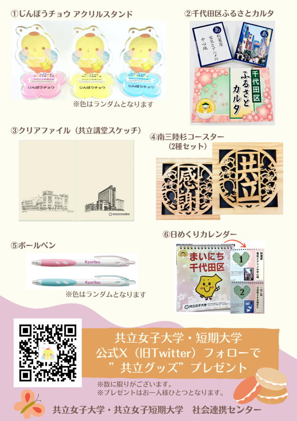 当日会場のブースにお越しいただき、Xのフォロー画面提示で本学オリジナルグッズをプレゼントします!
