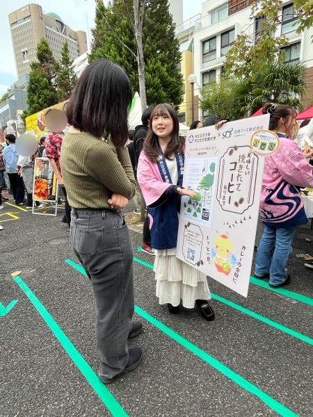 今年も「神田カレーグランプリ決定戦」に本学社会連携センターブースが出展しました。本学連携先である住商フーズ株式会社様からご提供いただいた「バードフレンドリー®コーヒー」の試飲提供と本学の社会連携活動の紹介を行いました。2日間で【約1,300杯】を提供することができ、「バードフレンドリー®コーヒー」の美味しさや魅力、本学の取組みを地域の皆さんにご紹介することができました。