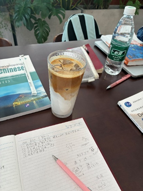 また、私は普段の授業でお世話になっている中国人の先生とも仲良くなって、お互いにカフェで相互学習をしました。