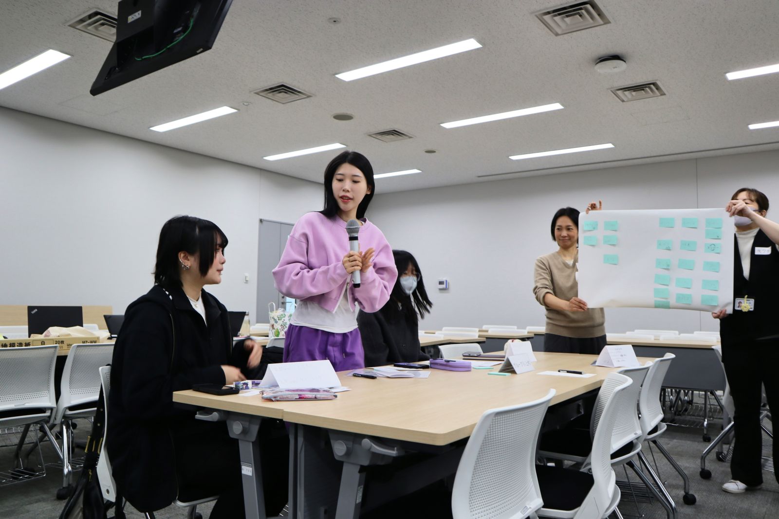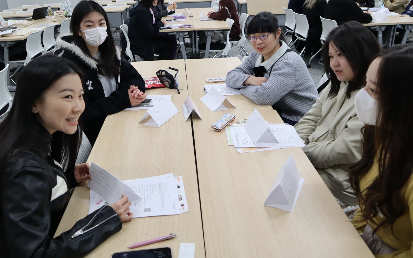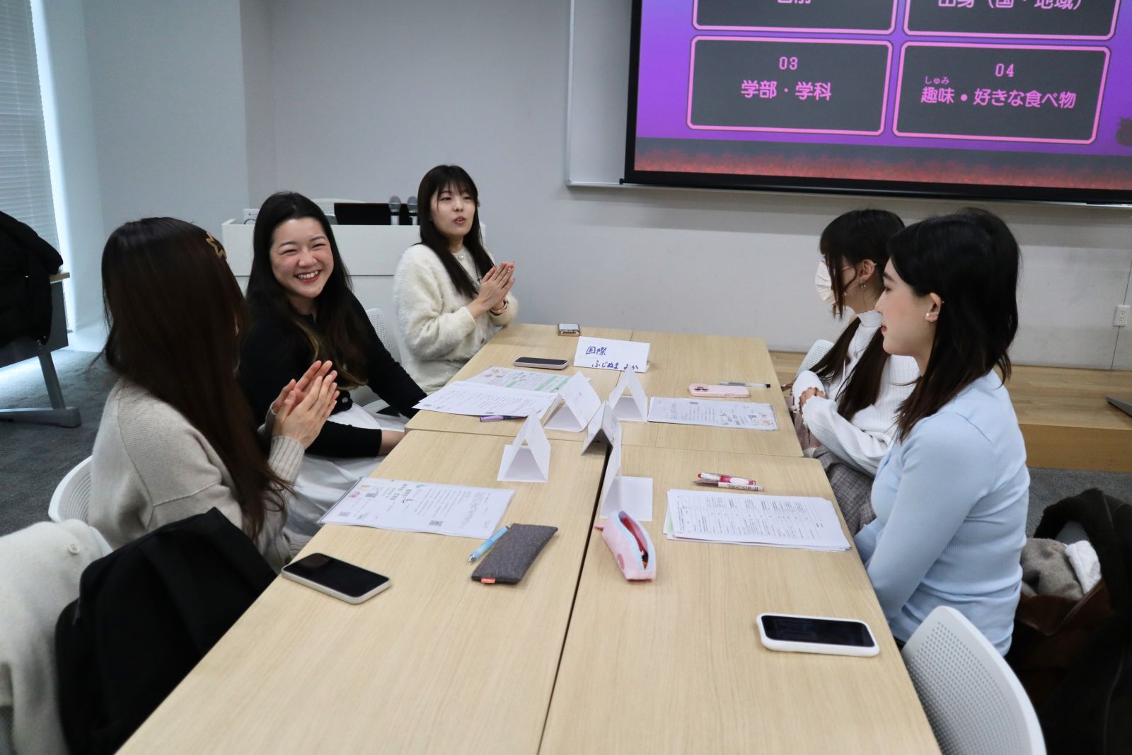日本で行きたい場所や好きな食べ物についての話題で盛り上がり、当初は緊張していた留学生の皆さんにも、次第に笑顔が見られるようになりました。