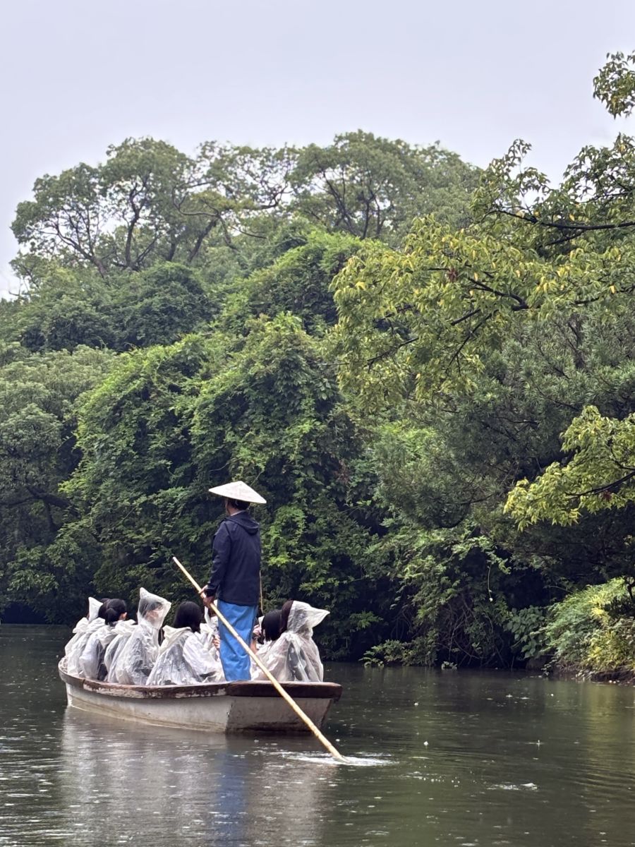 朝から天気が今一つで、川下りの際は雨合羽を着ての乗船となってしまいましたが、しばらくすると奇跡的に雨も上がり景色を楽しむことができました。